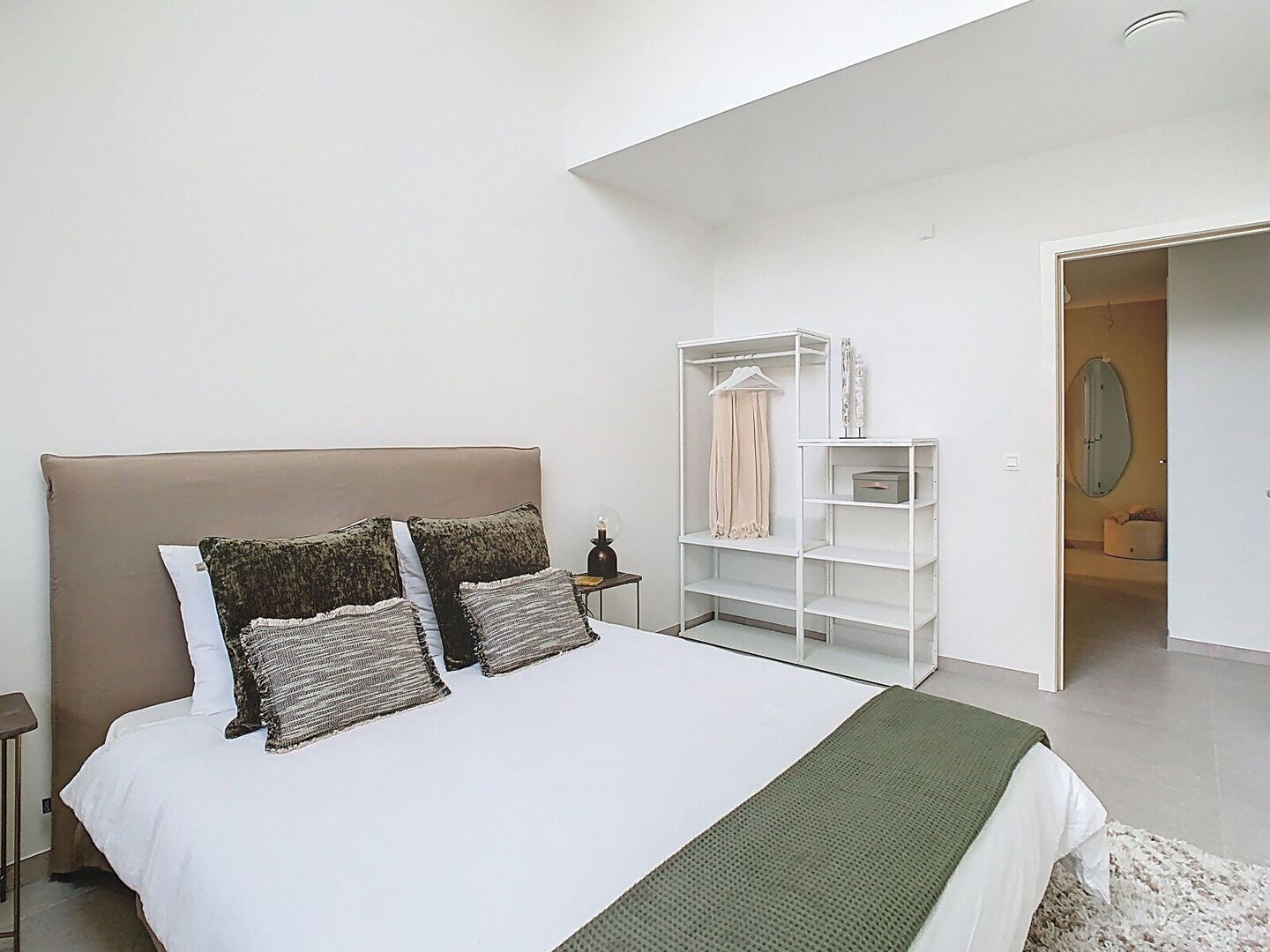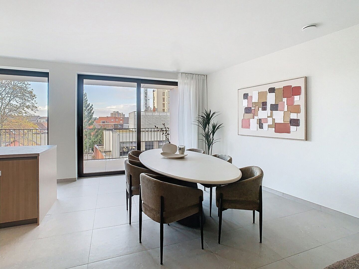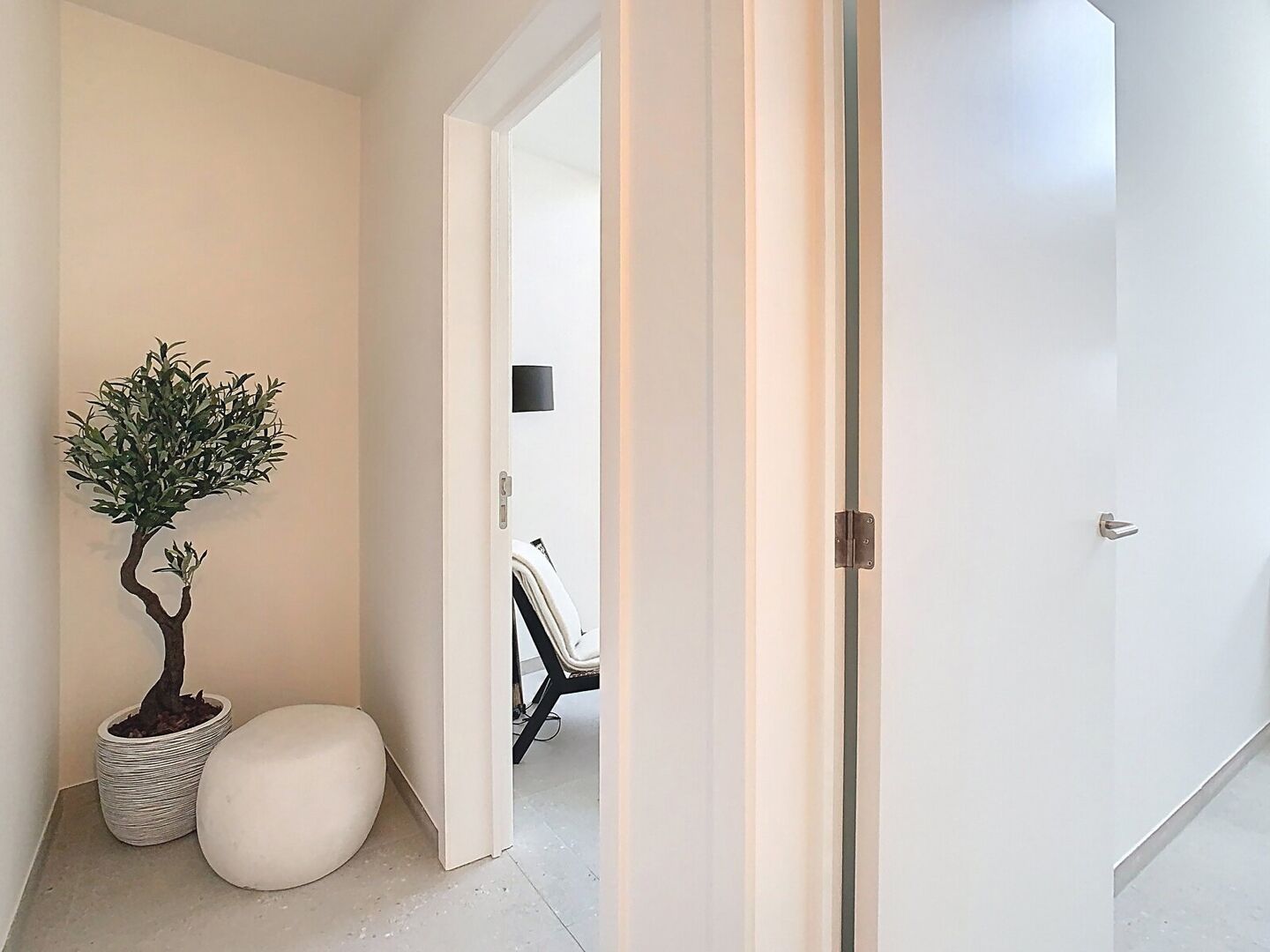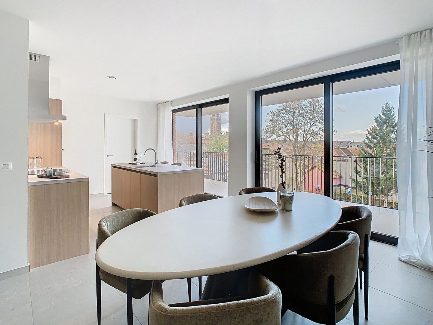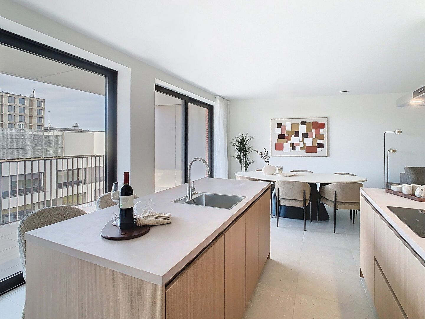De indeling is als volgt: via de lift kom je op de derde verdieping. In de inkomhal (waar plaats is voor een vestiaire kast) kom je via de glazendeur in de leefruimte met grote raampartijen richting het terras. Open volledig geïnstalleerde keuken met aansluitend een bergruimte. In de hal vinden we een gastentoilet, technische berging, wasberging. Het appartement beschikt over 3 slaapkamers, met hoge plafonds en veel licht - wat zorgt voor een enorm ruimtegevoel, en een badkamer met inloopdouche.