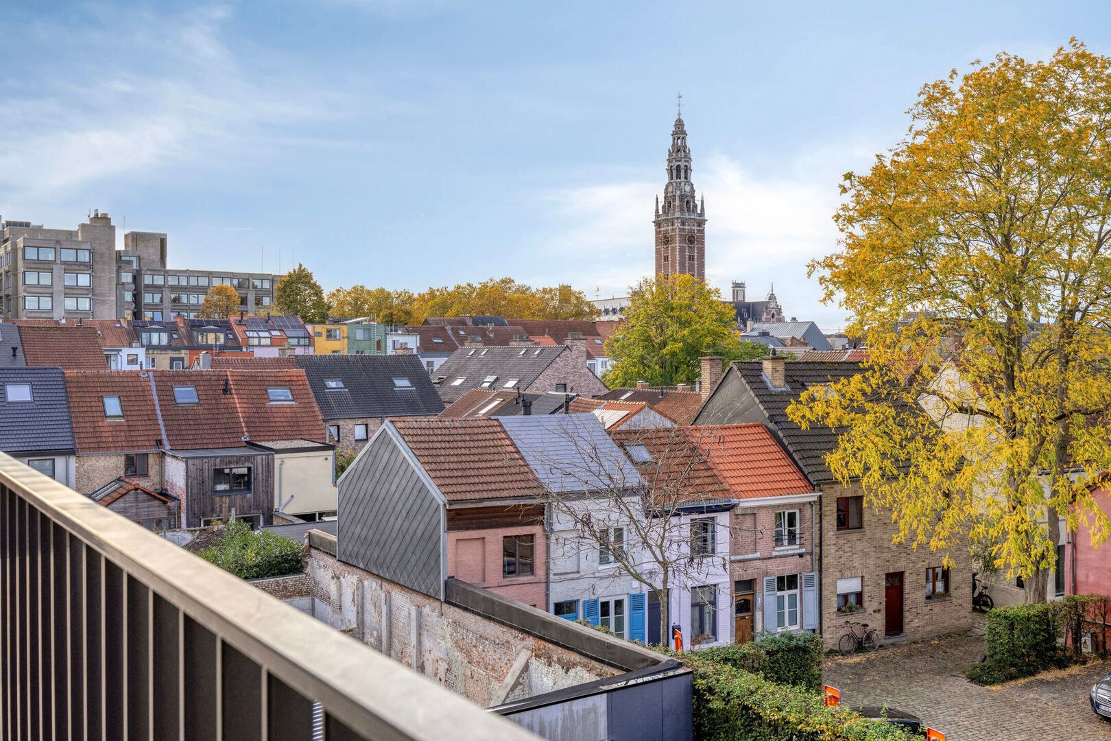 Een kleinschalig project met zeven stijlvolle appartementen in de gezellige Maria-Theresiastraat. Vanop het terras heb je een prachtig uitzicht op de iconische bibliotheektoren — en is het zo rustig dat je soms vergeet dat je midden in de stad woont.