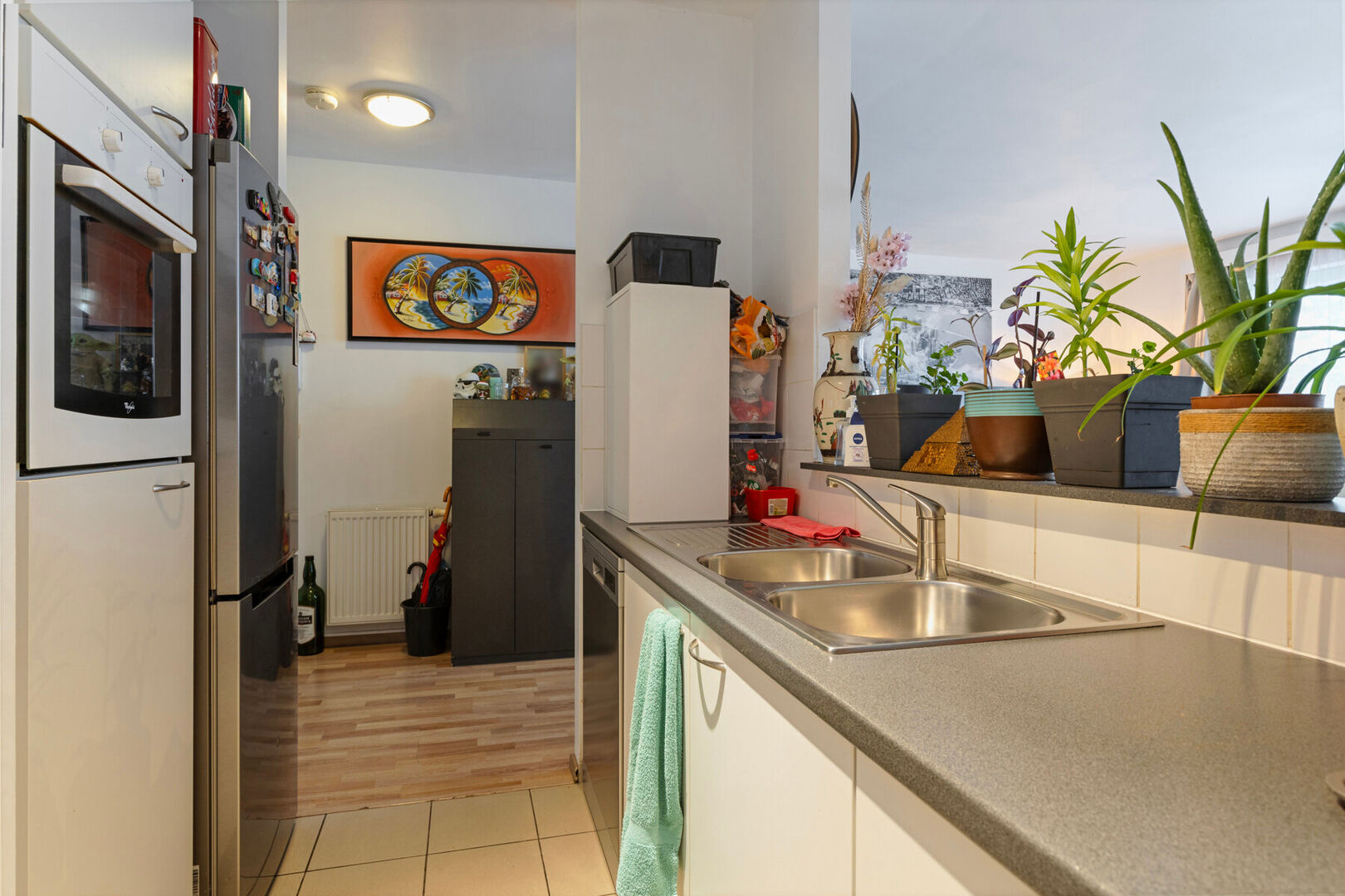 Het appartement is verhuurd aan 800 EUR/ maand + kosten voor lange termijn. Goed onderhouden gebouw, met gemeenschappelijke fietsenberging, gelegen nabij openbaar vervoer, winkels, scholen en invalswegen.
