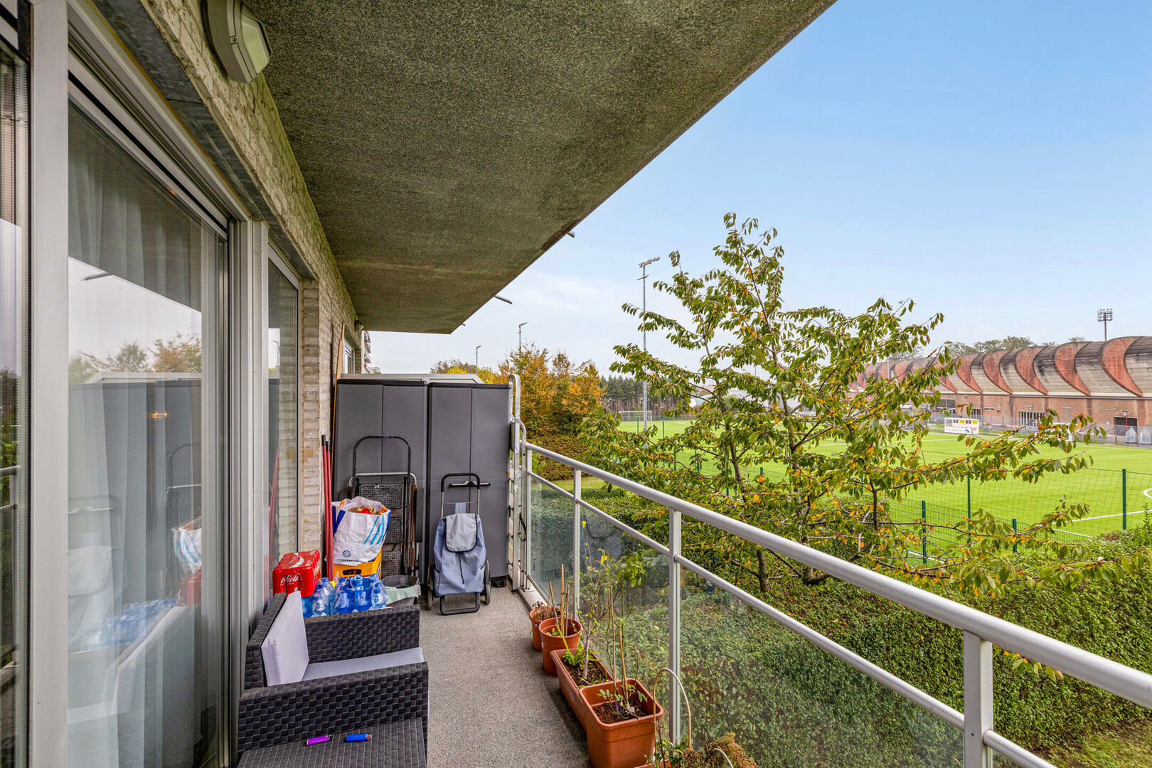 Dit instapklare appartement beschikt over een ruime leefruimte met open keuken en directe toegang tot gezellig terras (oriëntatie Zuid-Oost). Verder heb je nog een apart toilet met handwasbakje, een handige berging met aansluiting wasmachine -en doorgkast, douchekamer, slaapkamer met terrasje aan de voorzijde en tot slot de 2de slaapkamer met aansluitend badkamer (bad en lavabo). De staanplaats is verplicht bij aan te kopen voor 25.000 EUR.