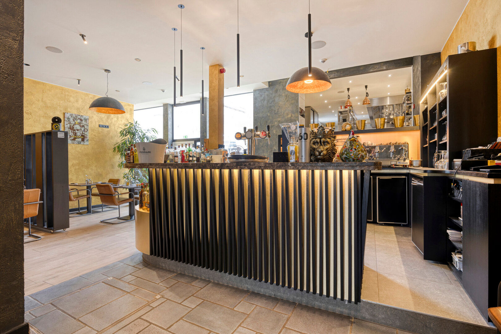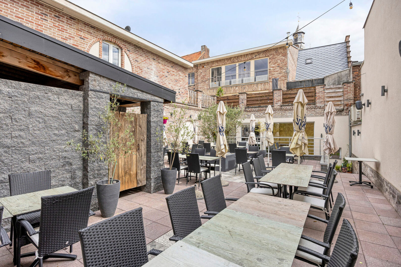 De gelijkvloerse handelsruimte (311 m² – EPC-label C) beschikt over een ruime zaal van 145 m², een professionele horecakeuken met een bovenliggende ruimte waarin zich een koelcel bevindt. Daarnaast is er een toiletruimte voor dames en heren, evenals een polyvalente ruimte die momenteel dienstdoet als stockageruimte. Aan de achterzijde van het restaurant bevindt zich een ruim zomerterras.