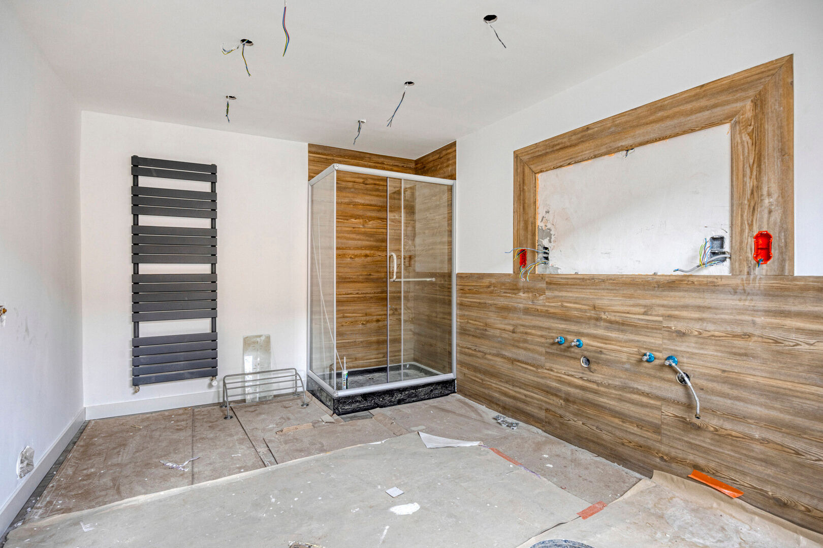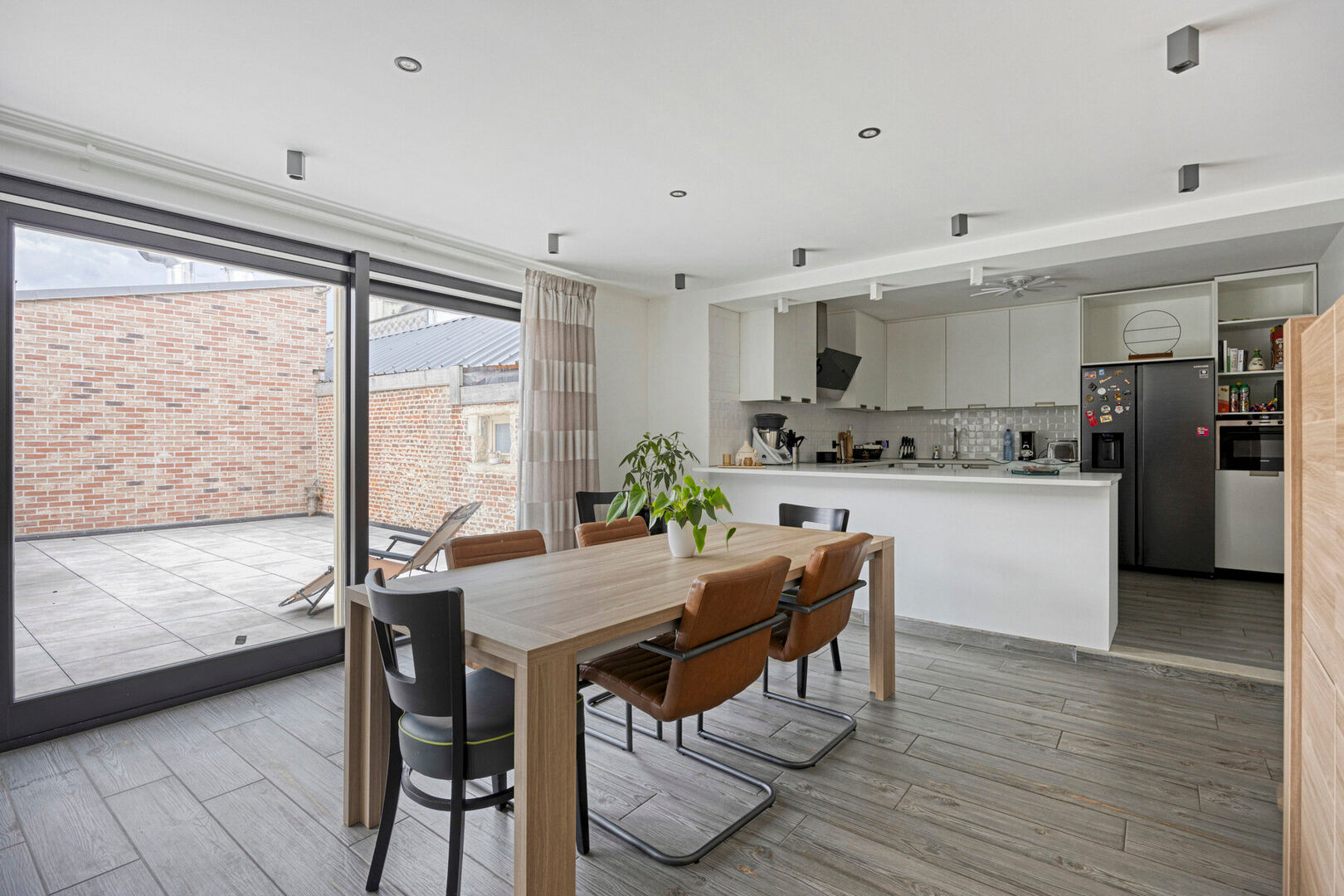 Het appartement op de eerste verdieping (186 m² – EPC-label B) bestaat uit een inkomhal, een leefruimte met keuken, een berging, twee slaapkamers, een bureau en een badkamer. Op de tweede verdieping bevindt zich een derde slaapkamer met mezzanine. Vanuit de leefruimte heeft u toegang tot het ruime terras van 67 m².