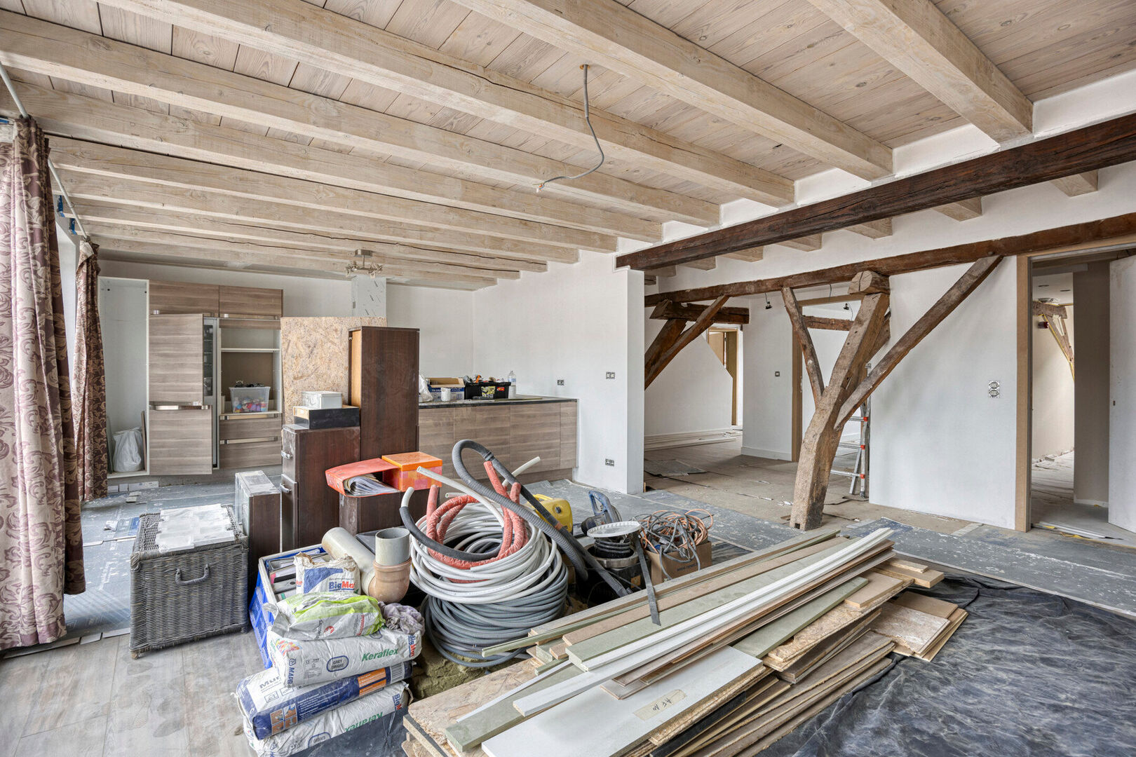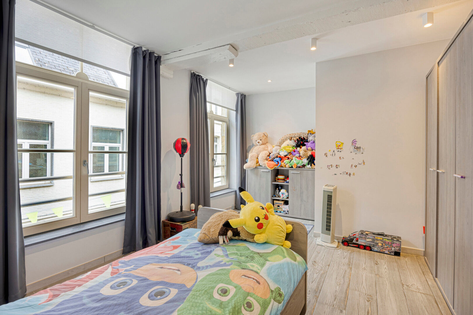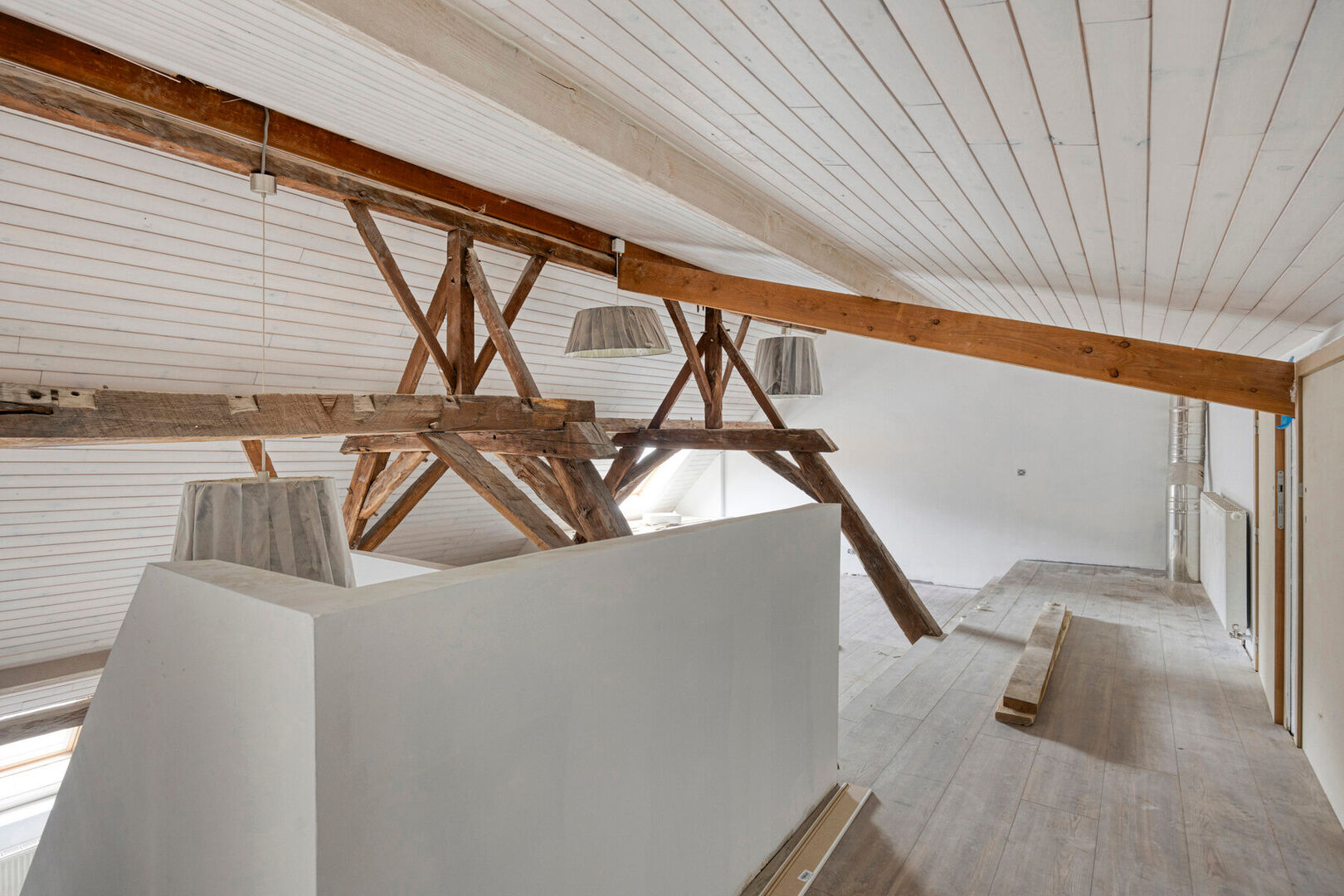 Het appartement op de tweede verdieping (166 m² – EPC-label B) bestaat uit een leefruimte met keuken, een nachthal, twee slaapkamers, een berging en een badkamer. Via de nachthal heeft u toegang tot de derde verdieping van het gebouw, waar zich een ruime mezzanine, een zolderruimte en de derde slaapkamer bevinden. Dit appartement beschikt niet over een terras, maar wel over een veluxraam met terrasfunctie. Aan dit appartement dienen nog enkele werken uitgevoerd te worden. Het appartement is momenteel in verdere afwerking; de beschikbare foto’s dateren van een eerdere fase.