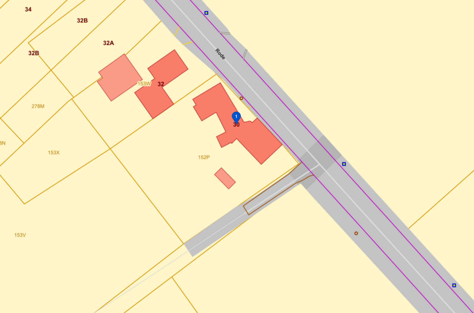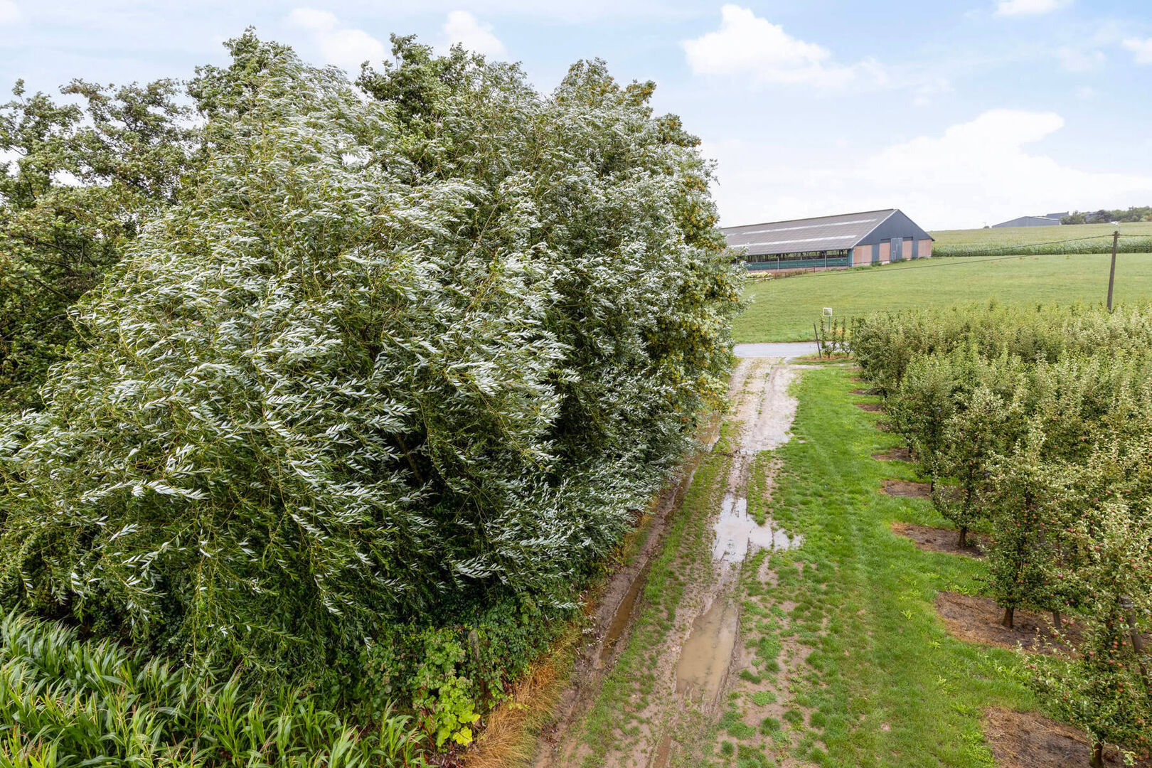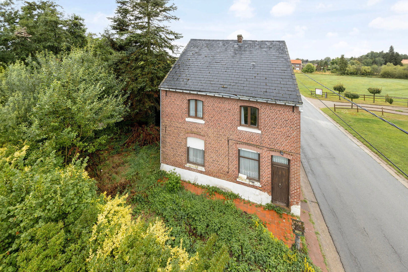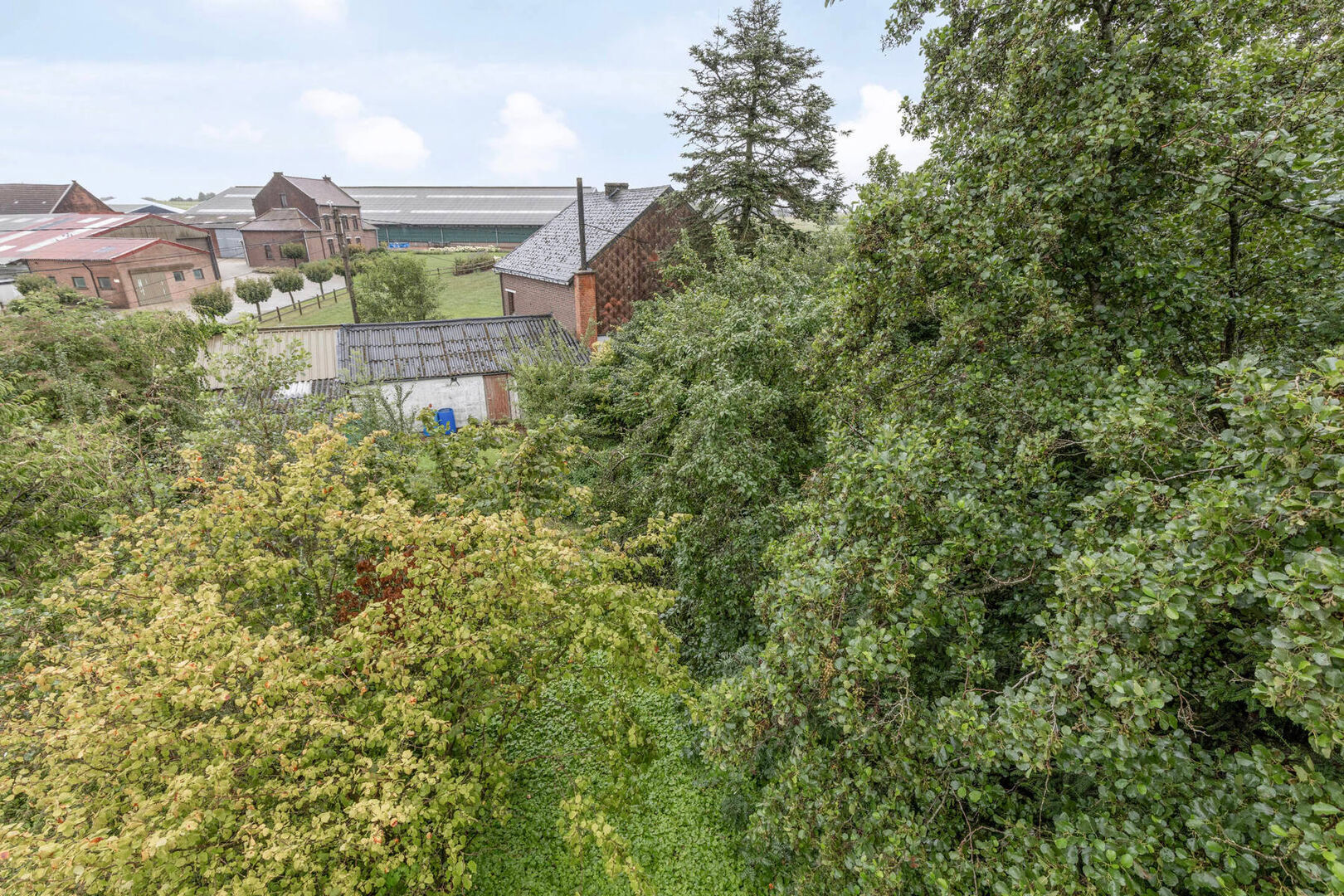 Het perceel is nog niet verkaveld en momenteel bebouwd met een woning (EPC label F) en bijgebouwen.