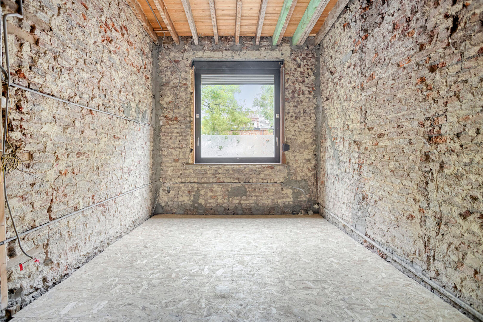 uitstekend gelegen 'gestripte' woning met tal van mogelijkheden: bewoonbare oppervlakte van 180 m², momenteel 2 slaapkamers, ruime open zolderruimte (totaliteit slaapkamers uitbreidbaar naar 4), aangename tuin en mogelijkheid tot het bouwen van een garagebox achteraan het perceel (mits bekomen van een vergunning). EPC-label D.