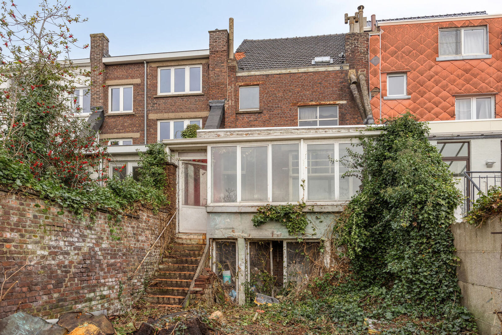Buiten beschikt het perceel vooraan over een autostaanplaats voor de garagepoort en achteraan over een ruime, aangename stadstuin.